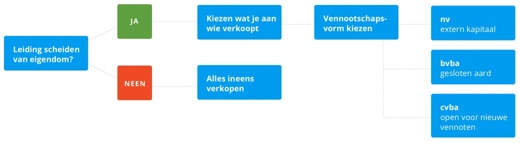 Een bedrijf geleidelijk overdragen aan de werknemers heeft veel voordelen, zowel voor de vroegere als voor de nieuwe eigenaars. Voorwaarde is dat je naast de eigendom ook het leiderschap kan loslaten. Op praktisch vlak ga je de eigendom wellicht moeten opsplitsen in materiële en immateriële activa om de overname betaalbaar te maken. En je gaat goed moeten nadenken over de vennootschapsvorm. Een vennootschapsvorm die gedeelde eigendom en verantwoordelijkheid toelaat is de coöperatieve vennootschap.